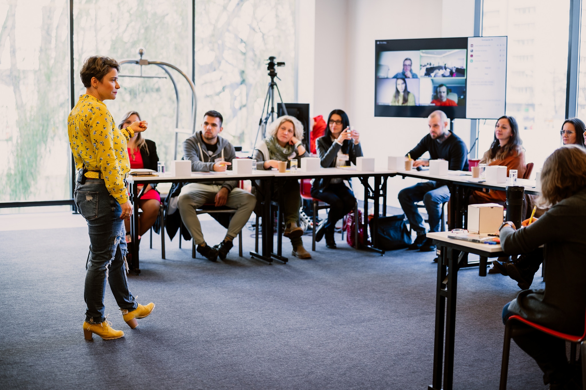 Wirtualna sala to szkolenie online, podczas którego pracujesz razem z trenerem na platformie Zoom. Dzięki ograniczonej liczbie osób, każdy ma możliwość wzięcia udziału w dyskusji, podzielenia się wykonanym ćwiczeniem oraz zadawania pytań trenerowi prowadzącemu na bieżąco.